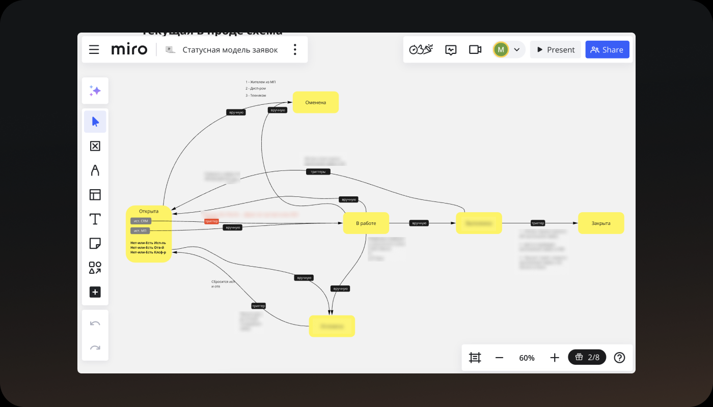 Критически важным функционалом для клиентов продукта является функционал раздела «Диспетчерская». Поэтому начал проектировать с этого раздела. Сначала, разобрал типовой бизнес-процесс работы УК с заявкой