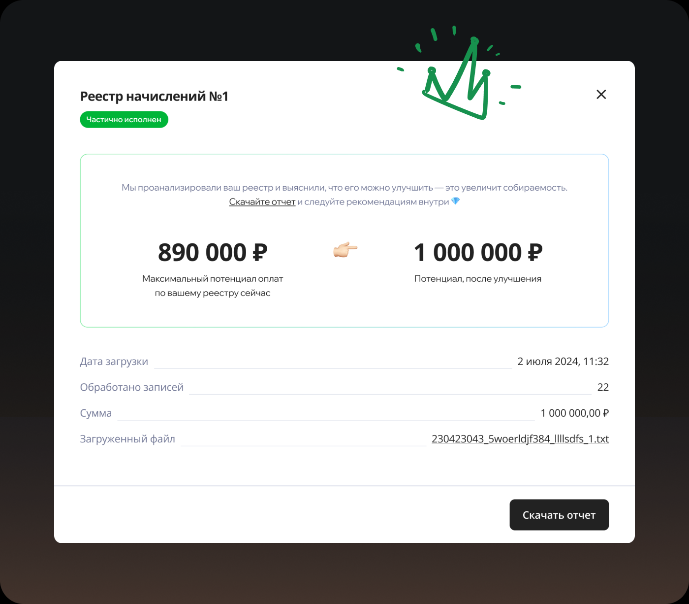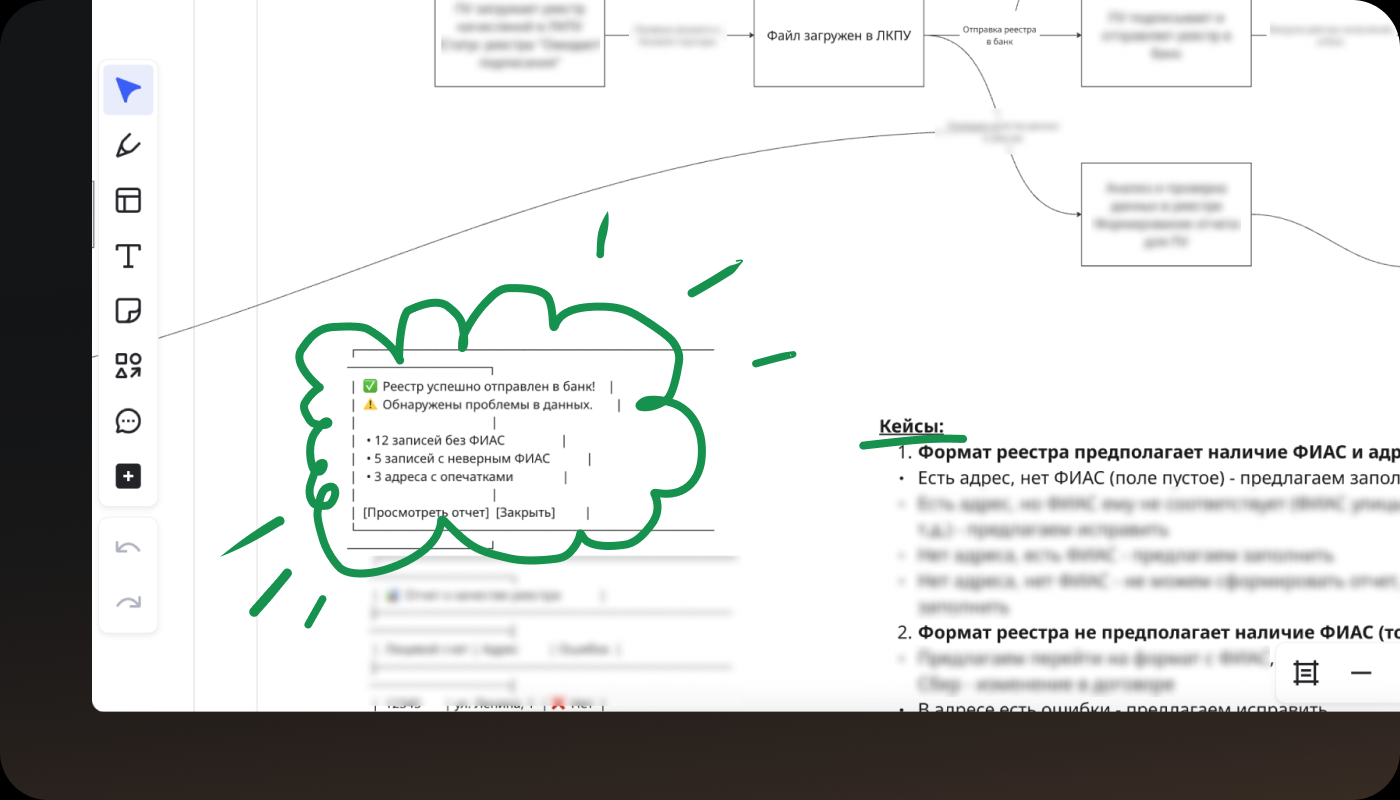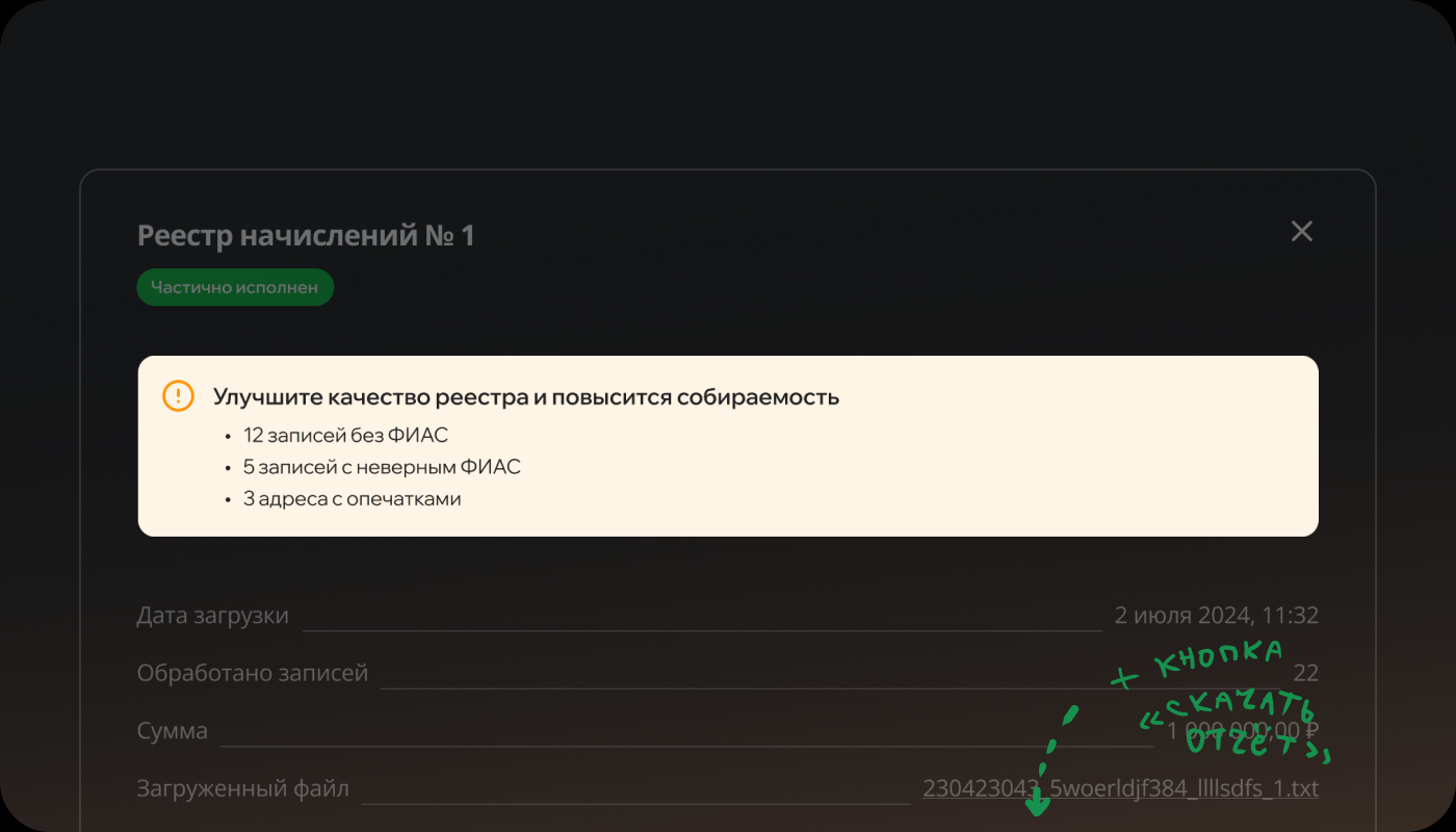 С точки зрения логики и технической и бизнесовой — когда данные заполнены не все, то они всё равно отправляются в банк успешно, потому что это фактически не является ошибкой… просто, в этом случае клиентский путь б2с-клиента — намного длиннее, чем он будет, если исправить данные в реестре. И сложность в том, что мы не можем мотивировать, сказав б2б-пользователю: «Улучшите клиентский путь». А что же тогда говорить пользователю — каким должен быть смысл сообщения?