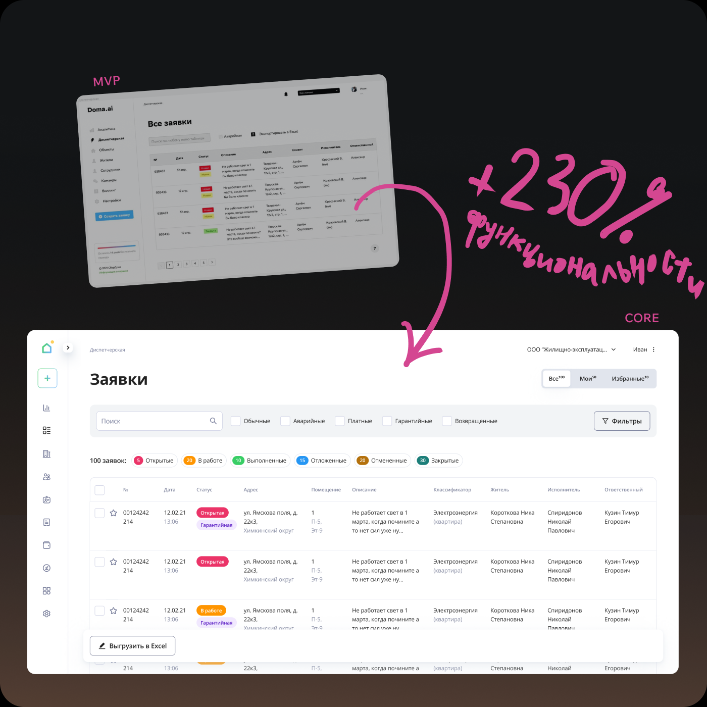 Критически важным функционалом для клиентов продукта является функционал раздела «Диспетчерская». Поэтому начал проектировать с этого раздела. Сначала, разобрал типовой бизнес-процесс работы УК с заявкой