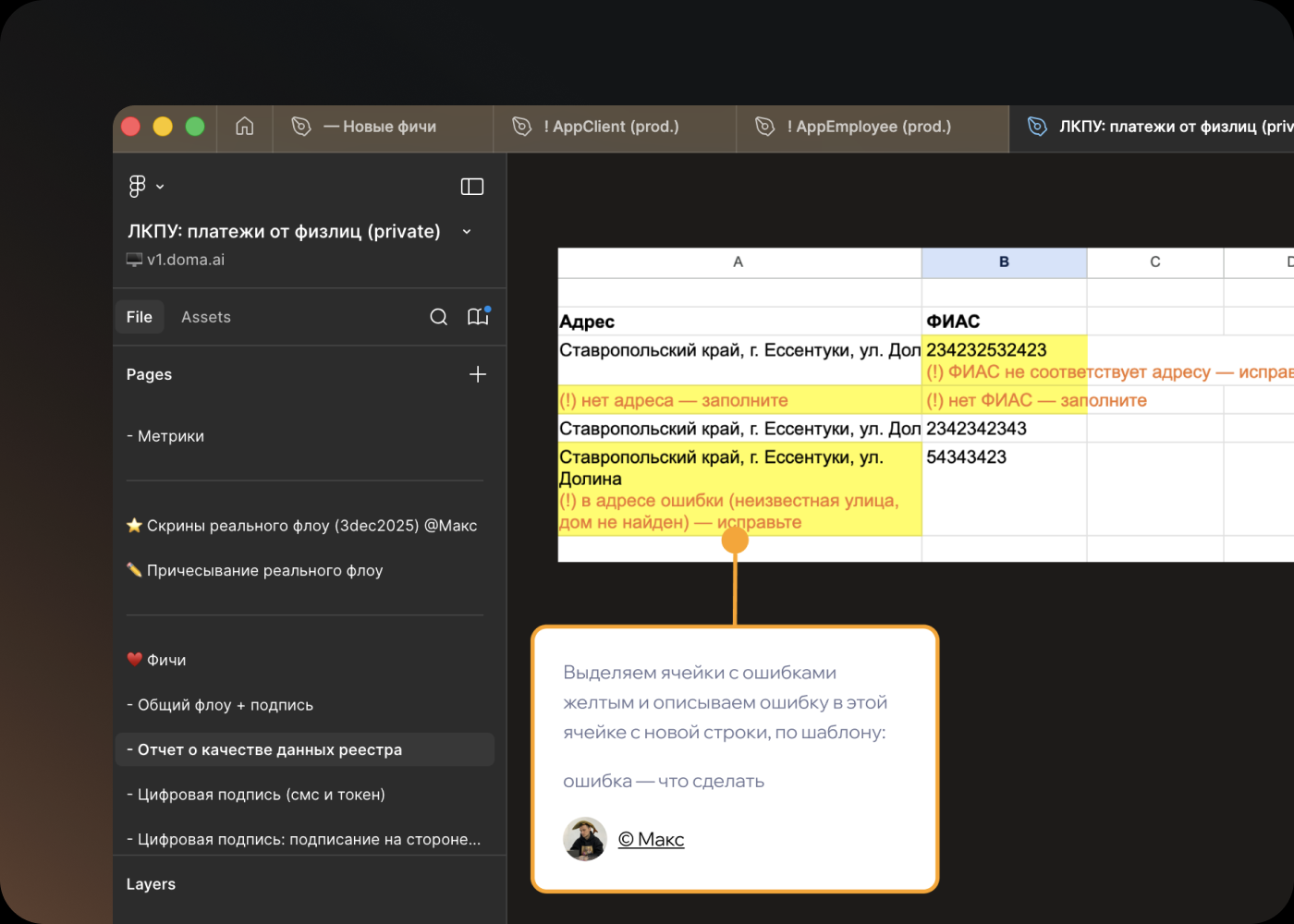 Конечно, прорабатываю инструкции внутри excel-файла, который скачает пользователь: выделяем ячейки и описываем понятным языком, как исправить ошибки