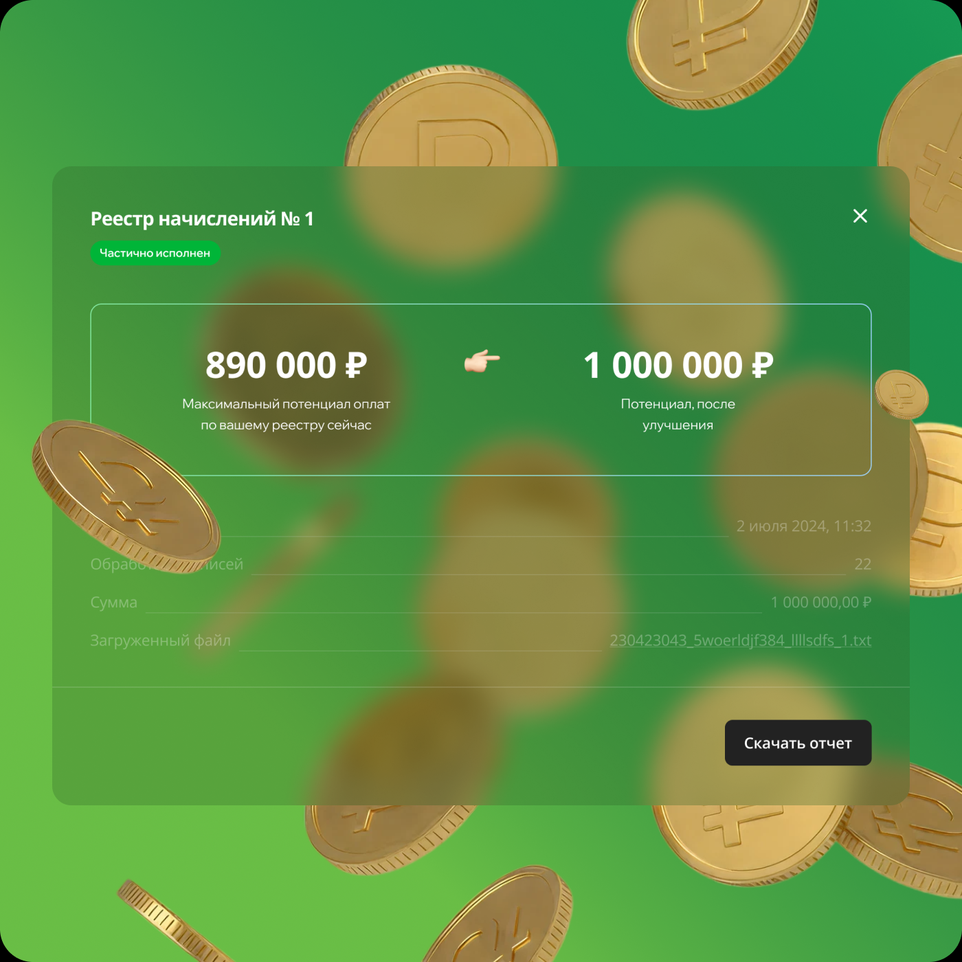 Отдаю продакту и разработке на ревью. Не забываю предупредить, что нужно посоветоваться с юристами, так как центральной идеей дизайна является придуманный мной термин «Потенциал оплат»